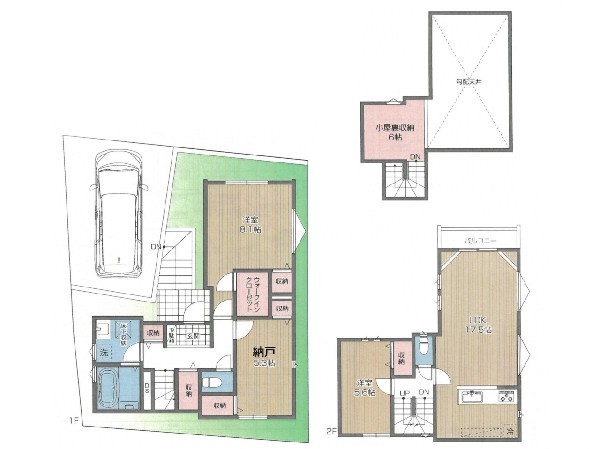 道路狭い(4メートル未満)、敷地延長(旗竿地)、断熱に配慮された建物、食器洗い洗浄乾燥機、浴室換気乾燥暖房機、大人の二人暮らし、LDKは1階に、2階建て住宅限定、リビングイン階段、LDK20帖以上、対面キッチン、小学校10分以内、総合病院10分以内、公園10分以内、都市ガス、フラット35利用可、カースペース2台