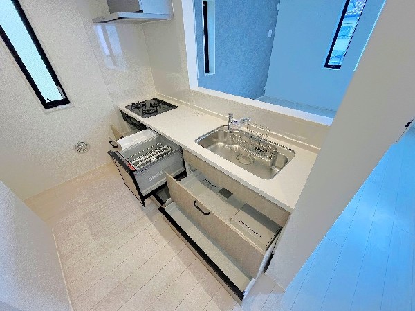 食器洗い洗浄乾燥機、浴室換気乾燥暖房機、駅まで平坦ラクラク通勤、2沿線利用であんしん通勤、子供の多い街に住む、自然を感じる暮らし、2階建て住宅限定、リビングイン階段、LDKは2階に、広々バルコニー、対面キッチン、浴室1坪以上、小学校10分以内、大規模公園10分以内、コンビニ10分以内、保育園10分以内、幼稚園10分以内、公園10分以内、都市ガス、屋根付きカースペース、日当たり良好、南道路限定、道路と段差無し、低層住居専用地域