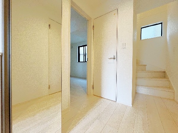 都市ガス、公営水道、公共下水、ビルトインガレージ、駐車場1台、整形地、閑静な住宅地、平坦地、都市近郊、地盤調査済、南側道路面す、周辺交通量少なめ、駅まで平坦、2沿線以上利用可、小学校徒歩10分以内、中学校徒歩10分以内、保育施設・幼稚園5分以内、公園5分以内、対面キッチン、都市ガス、システムキッチン、ガスコンロ、ガス3口、対面キッチン、食器洗い機付き、浄水器、ユニットバス、追い焚き、浴室乾燥機、ウォシュレット、オートバス付き、トイレ2ヶ所、浴室1坪以上、浴室に窓、暖房便座、浴室暖房、バルコニー、バルコニー2面、南面バルコニー、2階建、採光3面、全室南向き、南向き、全室2面採光、フローリング、全室フローリング、リビング階段、クローゼット、収納、下駄箱、全居室収納、シャンプドレッサー付き、年内入居可、モニタ付きインターフォン、複層ガラス、火災警報器(報知機)、通風良好、陽当り良好、24時間換気システム、建物10年保証