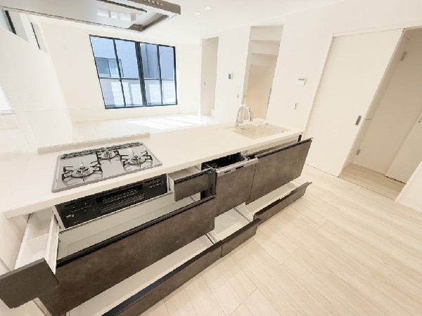 省エネに配慮された建物、床暖房、食器洗い洗浄乾燥機、浴室換気乾燥暖房機、急行電車でスピード通勤、駅まで平坦ラクラク通勤、2沿線利用であんしん通勤、ウォークインクローゼット、リビングイン階段、LDK15帖以上、対面キッチン、浴室1坪以上、小学校10分以内、スーパー10分以内、コンビニ10分以内、小児科医院10分以内、保育園10分以内、公園10分以内、都市ガス、フラット35利用可、屋根付きカースペース、整形地、道路と段差無し、3階建て以上建築可能地域