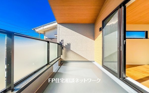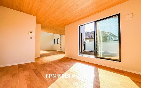 プライバシーに配慮し二階に配置したLDKは21.75帖と広くバルコニーに面した開放感のある空間です。