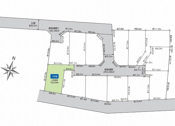 閑静な住宅地の全13区画の分譲地。お好きなハウスメーカーでお客様のお好みの間取りの家を建てられます。