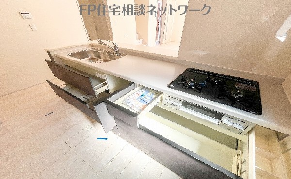 都市ガス、公営水道、公共下水、設計住宅性能評価付、閑静な住宅地、地盤調査済、2沿線以上利用可、対面キッチン、都市ガス、システムキッチン、カウンタキッチン、対面キッチン、浄水器、追い焚き、浴室乾燥機、トイレ2ヶ所、浴室1坪以上、浴室に窓、バルコニー、2階建、LDK15畳以上、全室2面採光、リビング階段、床下収納、全居室収納、フラット35Sに対応、モニタ付きインターフォン、複層ガラス、通風良好、陽当り良好