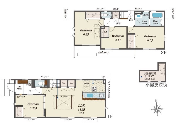 18帖LDKには収納二箇所有。約3帖の小屋裏収納には季節外の荷物やご家族の思い出の品など片付きます。