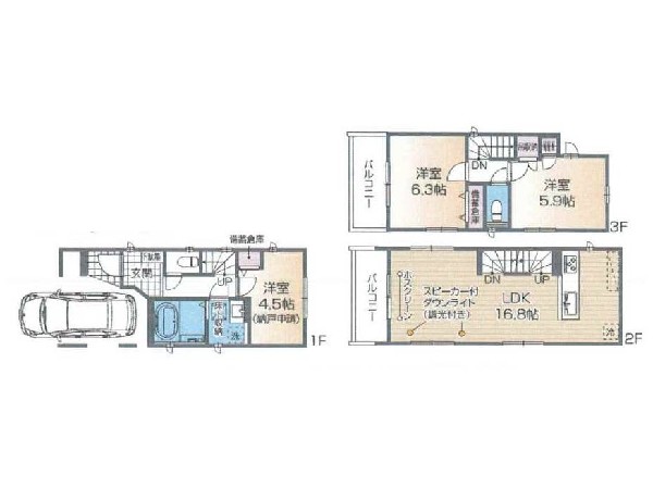 都市ガス、公営水道、公共下水、設計住宅性能評価付、省エネルギー対策、耐震構造、シックハウス対策、外壁サイディング、建設住宅性能評価書(新築時)、ビルトインガレージ、駐車場1台、整形地、閑静な住宅地、平坦地、都市近郊、地盤調査済、前道6m以上、市街地が近い、周辺交通量少なめ、スーパーが近い(10分以内)、駅まで平坦、始発駅、2沿線以上利用可、小学校徒歩10分以内、中学校徒歩10分以内、保育施設・幼稚園5分以内、公園5分以内、コンビニ5分以内、ウォークインクローゼット、対面キッチン、都市ガス、整形地、システムキッチン、ガスコンロ、ガス3口、カウンタキッチン、対面キッチン、浄水器、ユニットバス、追い焚き、浴室乾燥機、ウォシュレット、オートバス付き、トイレ2ヶ所、浴室1坪以上、浴室に窓、暖房便座、浴室暖房、バルコニー、3階建以上、LDK15畳以上、省エネ給湯器、採光3面、全室2面採光、フローリング、全室フローリング、リビング階段、クローゼット、ウォークインクローゼット、収納、床下収納、下駄箱、全居室収納、シャンプドレッサー付き、年度内入居可、モニタ付きインターフォン、複層ガラス、火災警報器(報知機)、全居室複層ガラスか複層サッシ、通風良好、陽当り良好、24時間換気システム、建物10年保証