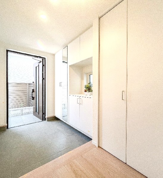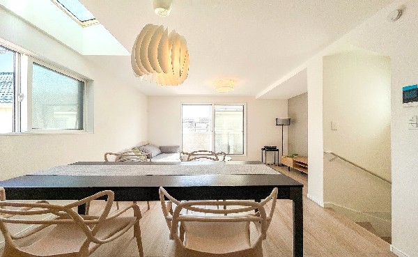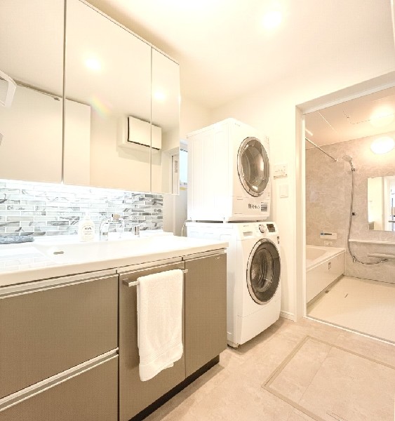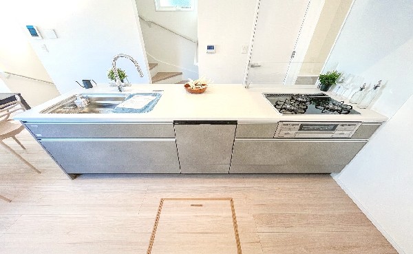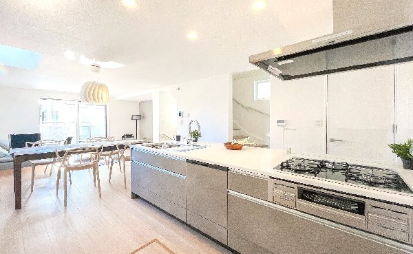 都市ガス、公営水道、公共下水、閑静な住宅地、地盤調査済、南側道路面す、2沿線以上利用可、対面キッチン、都市ガス、システムキッチン、カウンタキッチン、対面キッチン、食器洗い機付き、浄水器、追い焚き、トイレ2ヶ所、浴室1坪以上、浴室に窓、ルーフバルコニー、南面バルコニー、2階建、LDK15畳以上、全室2面採光、リビング階段、床下収納、全居室収納、フラット35Sに対応、モニタ付きインターフォン、複層ガラス、通風良好、陽当り良好