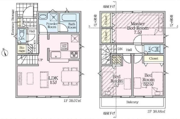 都市ガス、公営水道、公共下水、外壁サイディング、閑静な住宅地、地盤調査済、2沿線以上利用可、システムキッチン、カウンタキッチン、対面キッチン、追い焚き、浴室乾燥機、トイレ2ヶ所、浴室1坪以上、浴室に窓、南面バルコニー、2階建、LDK15畳以上、全室2面採光、リビング階段、床下収納、全居室収納、フラット35Sに対応、モニタ付きインターフォン、複層ガラス、通風良好、陽当り良好、対面キッチン、都市ガス
