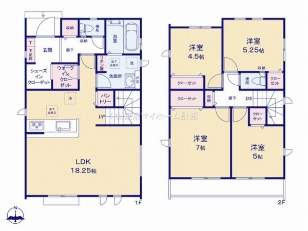 南側接道につき陽当り良好です。LDK18.25帖は明るく開放的です。収納を多く採用した機能的な間取り