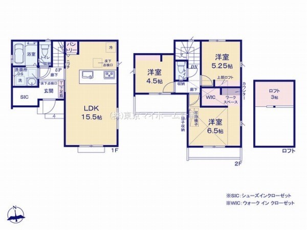 東南角地につき陽当りの良い立地です。SICやロフト・WICなど機能的な収納を備えた間取りです。